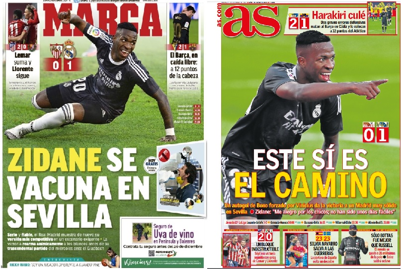 השנה ריאל מעדה בעיקר נגד קבוצות פחות טובות כמו שחטאר דונייצק בעוד היא ניצחה את ברצלונה בקאמפ נואו (1:3), את אינטר בסן סירו (0:2) וכאמור אתמול את סביליה. "זידאן חסין בסביליה", נכתב בשער "מארקה", ובסיקור המשחק נכתב כי ריאל הסולידית והחזקה בהגנה הראתה שוב את פניה. "השחקנים הציגו הצבעת אמון מוחלטת עם המאמן. סוף סוף טיבו קורטואה שמר על שער נקי בזכות ההגנה שלו". "זו בדיוק הדרך", נכתב בשער "אס". "ריאל הייתה מסודרת הרבה יותר מהמשחקים האחרונים. לוקה מודריץ' שב להיות המנהיג". הקרואטי קיבל את הציון הגבוה שלושה כוכבים, בדומה לחברו הברזילאי.