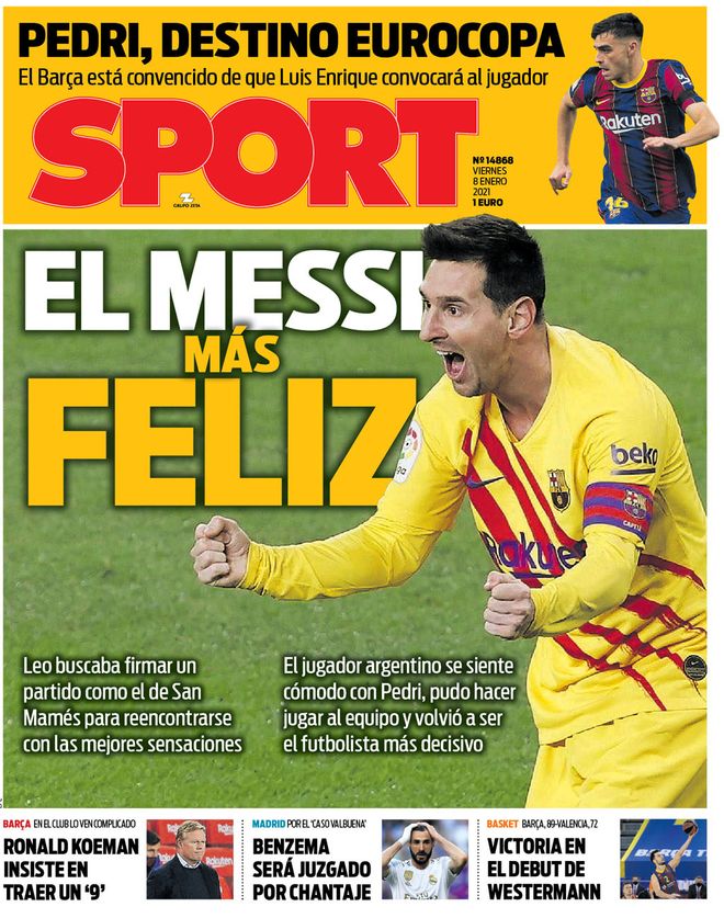 "מסי יותר שמח", נכתב בשער עיתון "ספורט". "הארגנטינאי חיפש משחק גדול כמו בסן ממס כדי להיזכר ברגשות הטובים הכה מוכרים לו". עוד נכתב שהקפטן מרגיש בנוח עם פדרי שהביא לשיפור גדול במשחקה של הקבוצה. נזכיר כי גם בעונה די חלשה השתלט מסי על פסגת הפיצ'יצ'י (קרב מלך השערים) לצד ג'רארד מורנו ולואיס סוארס.
