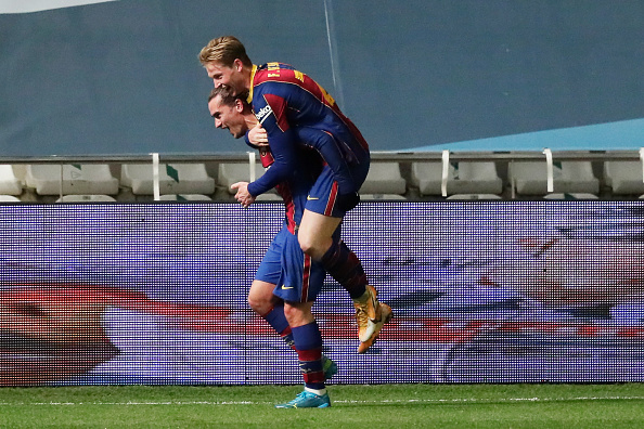 מתקרבים לסיום המחצית. ברצלונה השתלטה על המשחק באופן מוחלט בדקות האחרונות אך לא הגיעה למצבים. בדקה ה-39, השער הגיע. כדור עומק נפלא של בריית'ווייט לאנטואן גריזמן, שפרץ מהאגף השמאלי ושיגר הרמה נפלאה לפרנקי דה יונג, ההולנדי שלח בעיטה מהאוויר בנגיעה מעל השוער לתוך השער. 0:1 מדהים לברצלונה, התקפה נפלאה של הקטאלונים. ברצלונה יורדת למחצית עם יתרון חשוב.