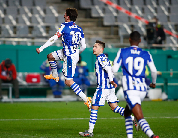ריאל סוסיאדד: אלכס רמירו, אנדוני גורוסאבל (חוסבה אסלדואה, ג'ון באוטיסטה), איגור סובלדיה, רובין לה נורמנד, נאצ'ו מונריאל, אנדר גווארה (מרטין זומיבנדי), מיקל מרינו, חון גורידי (אנד'ר בארנטחאה), מיקל אויארסאבל, פורטו (אדנן ינוזאי), אלכסנדר איסאק (וויליאן ג'וזה).