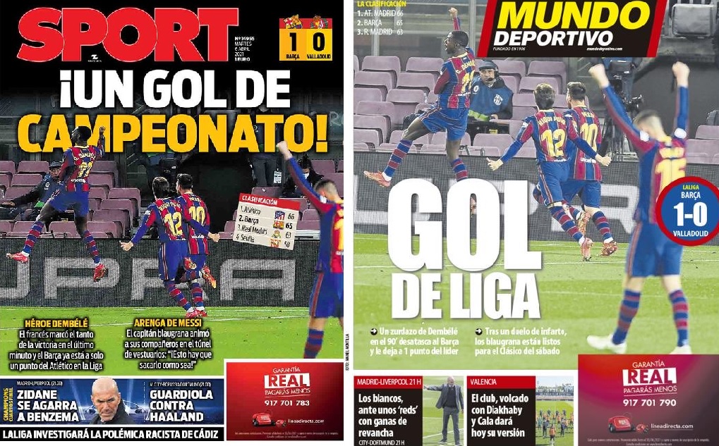 בכלי התקשורת בברצלונה יצאו מגדרם, כצפוי: "שער האליפות" נכתב בעיתון "ספורט" שם הגדירו את דמבלה כגיבור ("זו יכולה להיות האליפות שלו, זה השער הקטלני ביותר שלו מאז שהצטרף לברצלונה") וציינו את העצבים של מסי. "נראה שבארסה הייתה בדרך לאבד הזדמנות פז ואז הגיע טירוף דמבלה שבעט עם כל הלב והנשמה". "הוא רוצה את תווית המנהיג" נכתב בכותרת נוספת. "אם בארסה תהיה אלופה זה לא יישכח", נכתב גם ב"מארקה" המזוהה עם מדריד. "דמבלה שם את לה-ליגה בהישג ידה של בארסה", נכתב ב"מונדו דפורטיבו". על שער "מונדו דפורטיבו" נכתב: "שער בשביל הליגה. בארסה מוכנה לקלאסיקו". "המאמצים נשאו פרי, סוף סוף הליגה קרובה"