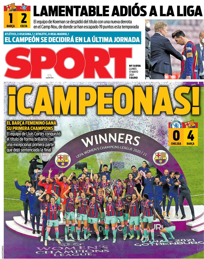בכותרות העיתונים עסקו בהצלחה של קבוצת הנשים שזכתה בליגת האלופות וזה מסביר הכל. "הפסד בלתי נסלח שגורם לקבוצה להיפרד מהמאבק" ו"הפסד מצער מאוד", היו חלק מהכותרות ב"ספורט". "הסיכויים לזכייה בתואר היו נמוכים גם לפני המשחק אבל עכשיו מתמטית גם זה בלתי אפשרי". "אדיוס ליגה", הייתה הכותרת (בקטן) ב"מונדו דפורטיבו" לצד תמונה של מסי מאוכזב כשלידו לואיס סוארס הצוהל. "בארסה שלטה אך שידרה פחות תשוקה אלא הרבה עצבים ואי שקט. קיבלנו מגמה כללית של העונה – בארסה סופגת ממעט הזדמנויות ואז גוססת".