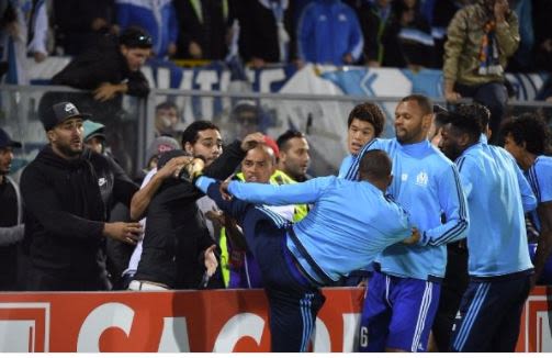 אברה והאוהד (AFP)Patrice Evra kicking a Marseille Fan | Patrice Evra Kicks Fan In Head Ahead Of Marseille Game: https://t.co/3h3IV1sbcU via @YouTube