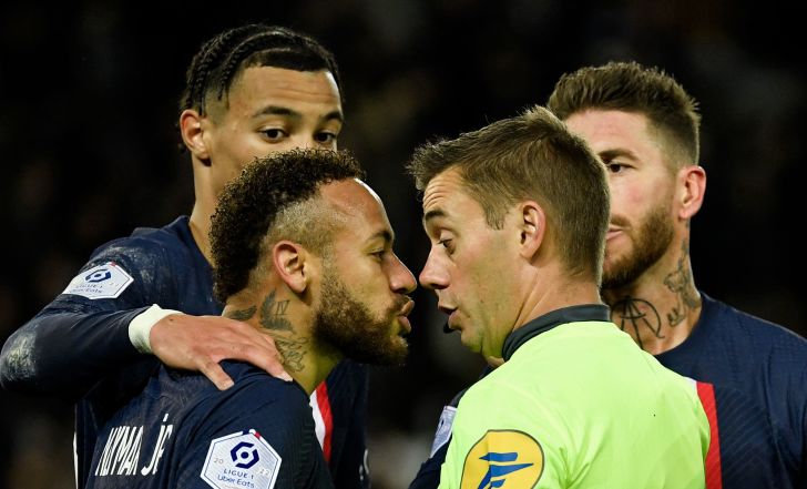 ניימאר מתווכח עם השופט אחרי שהורחק במדי פריז סן ז'רמן