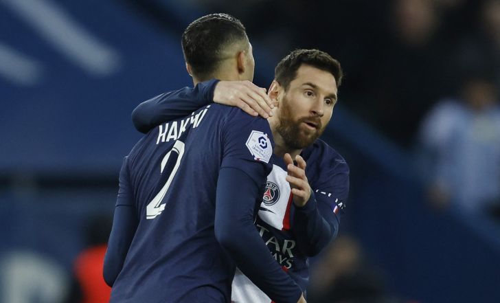 בקושי, אבל עוד שלוש נקודות. ליאונל מסי עם אשרף חכימי | רויטרס