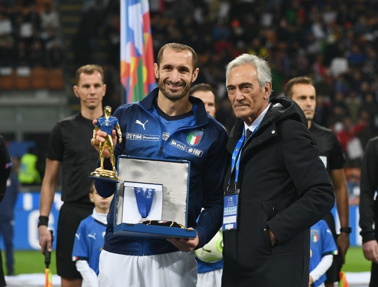ג'יורג'יו קייליני ערך את הופעתו המאה בנבחרת איטליה (Gettyimages)