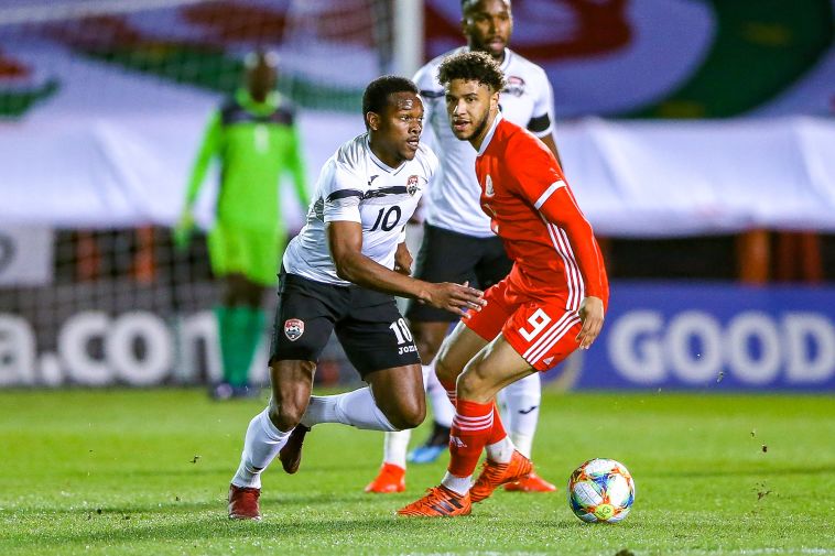 לוי גרסיה עם טיילר רוברטס. שחקן קריית שמונה פתח במדי טרינידד וטובגו (APF)