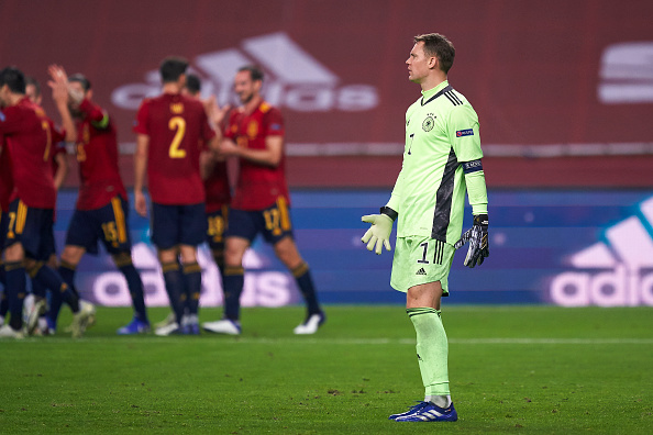 מי שכנראה ישמחו פחות הערב הם אוהדי ריאל מדריד, אשר ראו את הקפטן סרחיו ראמוס מוחלף לקראת סיום המחצית הראשונה, זאת לאחר שהוא תפס את השריר ברגלו. ה"מאנשאפט" הגיעו להתמודדות הערב כשהם יודעים שהם צריכים תיקו כדי להגיע לטורניר הגמר של ליגת האומות, אשר ייפתח באוקטובר 2021. יוגי לב עלה עם חוד התקפי מאוד הכולל את לירוי סאנה, סרג' גנאברי וטימו ורנר אך לצערו, משחק ההתקפה שלו היה אנמי בצורה מדהימה, כאשר חניכיו לא רשמו איום אחד לעבר המסגרת של אונאי סימון.