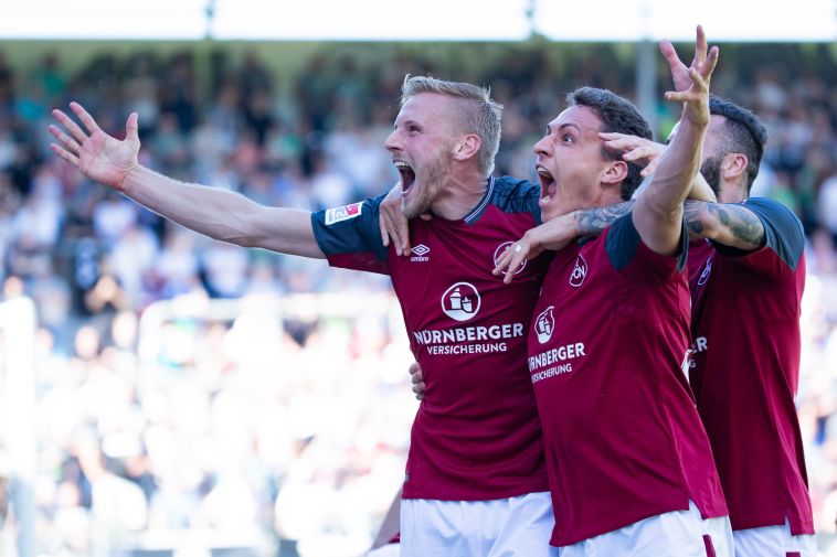 נירנברג חזרה לבונדסליגה אחרי ארבע שנים, הודות ל-0:2 בחוץ על סנדהאוזן משערים של האנו ברנס (ה-14 של הקשר הגרמני העונה) וטים לייבולד (לחצו כאן לצפייה בתקציר). דיסלדורף הבטיחה אף היא את המקום שלה בליגה העליונה כבר בשבוע שעבר. הולשטיין קיל, העולה החדשה לבונדסליגה השנייה, עשויה להשלים עליית שתי ליגות אחרי שהבטיחה את המקום השלישי המוביל למבחנים מול ה-16 בבונדסליגה.