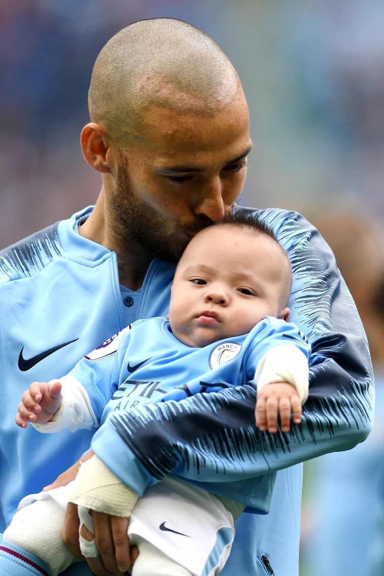 דוד סילבה עם בנו לפני המשחק. (gettyimages)