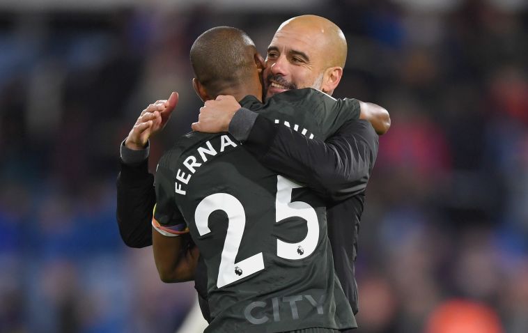 גווארדיולה עם פרננדיניו. יש לו על מי לסמוך, בינתיים (Gettyimages)