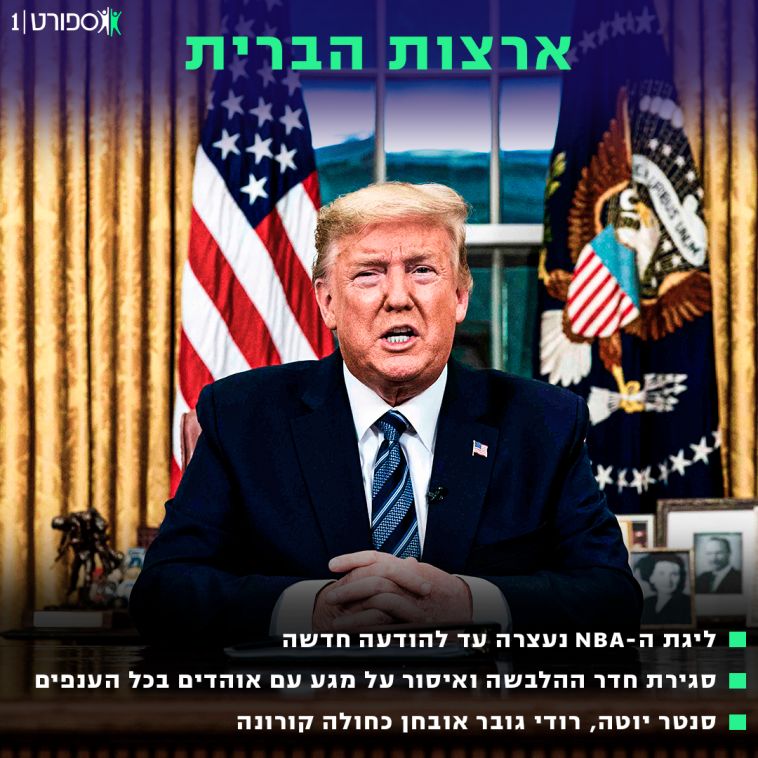 * סנטר יוטה ג'אז רודי גובר אובחן כחולה קורונה, מה שהביא את הנהלת ה-NBA להודיע על הפסקת המשחקים עד להודעה חדשה. שש קבוצות, כולל זו של השחקן הצרפתי, נכנסו לבידוד.