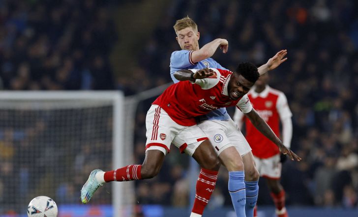 קווין דה בראונה מול תומאס פארטיי במשחק בין מנצ'סטר סיטי לארסנל | רויטרס