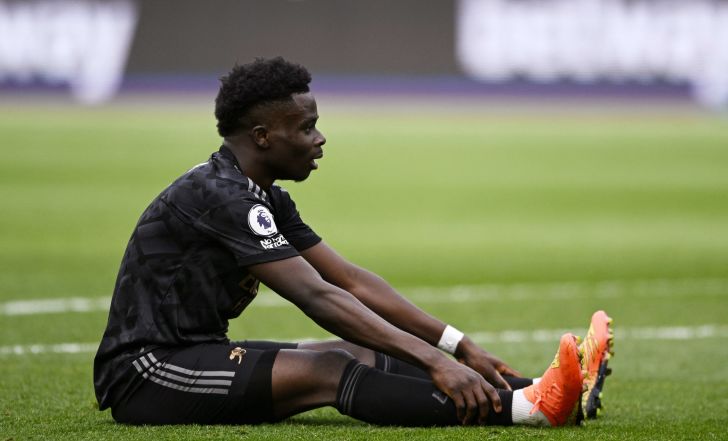 בוקאיו סאקה מאוכזב על הדשא אחרי המעידה של ארסנל