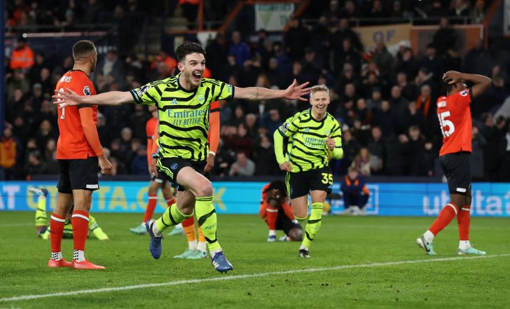 דרמת ענק נרשמה אמש (שלישי) בפרמיירליג, כשדקלן רייס כבש שבע דקות בתוך תוספת הזמן והעניק לארסנל 3:4 משוגע על לוטון. המשמעות: התותחנים פתחו פער של חמש נקודות מליברפול בפסגת הטבלה, עם משחק יותר מליורגן קלופ ושחקניו וכך גם ממנצ'סטר סיטי הרחוקה שש נקודות מהתותחנים.