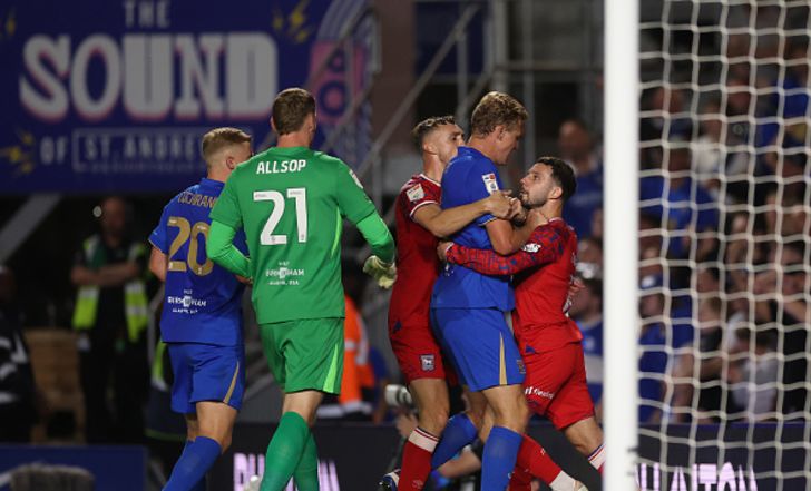 מגן בירמינגהאם, כריסטוף קלארר, רץ לעבר השחקנים שחגגו ונקלע לעימות עם קונור צ'פלין מאיפסוויץ' והעימות החל להתלקח. שחקנים משתי הקבוצות מיהרו להפריד ביניהם, אך לאחר מכן אוהד פרץ למגרש מהיציעים. האוהד ניסה להכות את דארה או'שיי, בלם איפסוויץ', לפני שנתפס על ידי סדרן. באותה עת בקבוק הושלך למגרש. המצב נרגע בסופו של דבר כאשר השריקה הסופית נשמעה וקבעה תיקו בין שתי הקבוצות.