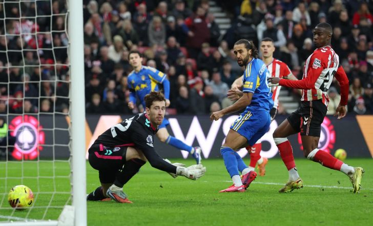 דומיניק קלברט-לואין שחקן לידס יונייטד כובש לרשת רובין רופס שוער סנדרלנד | רויטרס