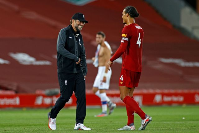 קלופ מאושר עם ואן דייק. שתי נקודות בלבד מפרידות בינו לתואר | PHIL NOBLE/POOL/AFP via Getty Images