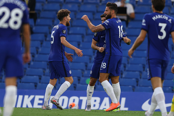 צ'לסי: קפה אריסבלאגה, ססאר אספיליקווטה, קורט זומה, אנטוניו רודיגר, מרקוס אלונסו (ריס ג'יימס, 80), מתאו קובאצ'יץ', ז'ורז'יניו, רובן לופטוס-צ'יק (רוס בארקלי, 67), וויליאן, כריסטיאן פוליסיק (קאלום הדסון-אודוי, 81), אוליבייה ז'ירו (תמי אברהם, 86).