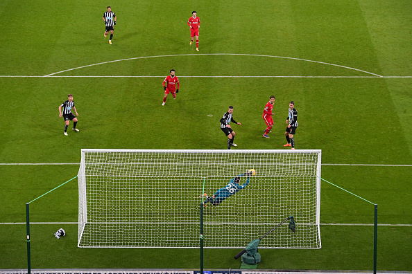ניוקאסל פתחה בקצב גבוה ובדקה ה-12 ווילסון קיבל מסירה ארוכה, השאיר מאחורי את פיליפס וניסה להכניע את אליסון, אך השוער הדף לקרן. ליברפול החזיקה בכדור רוב הזמן במחצית הראשונה, אולם שלישיית ההתקפה מיעטה לגעת בו והשוער דארלו לא ממש נאלץ להתאמץ עד הדקה ה-34, שבה סלאח הגיע למצב אחד על אחד בזכות מסירה נפלאה של רוברטסון – דארלו יצא מצוין ומנע מהמצרי לכבוש.