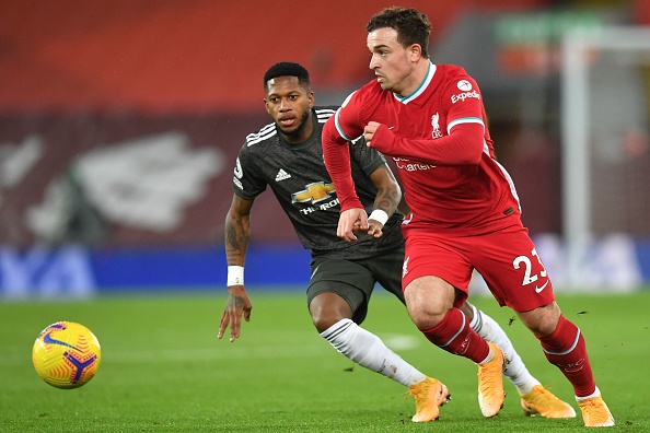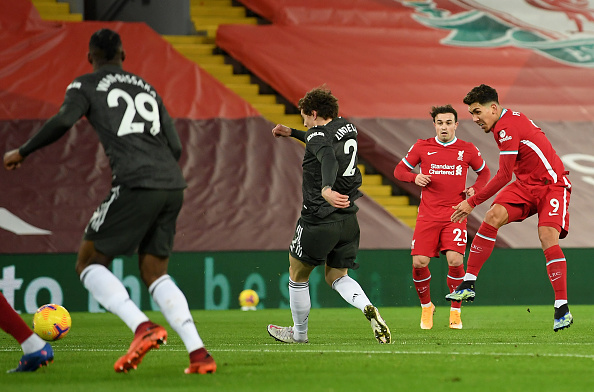 בדקה ה-33 לוק שואו פרץ יפה סמוך לרחבה והוכשל על ידי שאקירי. פרננדס ניצב ליד הכדור ושלח בעיטה מסובבת אדירה אך החמיץ במעט את המסגרת. ליברפול ניצלה בלבול ביונייטד ויצאה מהר קדימה, סלאח נבלם על ידי ההגנה ופירמינו הצטרף אבל בעט לידיו של דויד דה חאה.