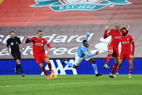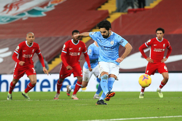דקה 37, מנצ'סטר סיטי החמיצה פנדל! סטרלינג חדר לרחבה של ליברפול והוכשל על ידי פאביניו, השופט אוליבר הצביע מיד על הנקודה הלבנה. גונדואן ניגש לכדור ופספס את המסגרת בגדול עם בעיטה חזקה ולא מדויקת.