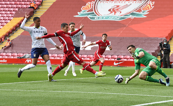 אסטון וילה כבשה ראשונה שתי דקות לסיום המחצית הראשונה ממהלך שהחל אצל ג'ון מקגין, שמסר כדור עומק לכיוונו של אולי ווטקינס והאחרון מצא את הרשת בנגיחה, אותה אליסון היה יכול לעצור. רוברטו פירמינו מצא גם הוא את הרשת לפני שריקת המחצית, אך נפסל בהחלטה גבולית מאוד של ה-VAR בטענה לנבדל.