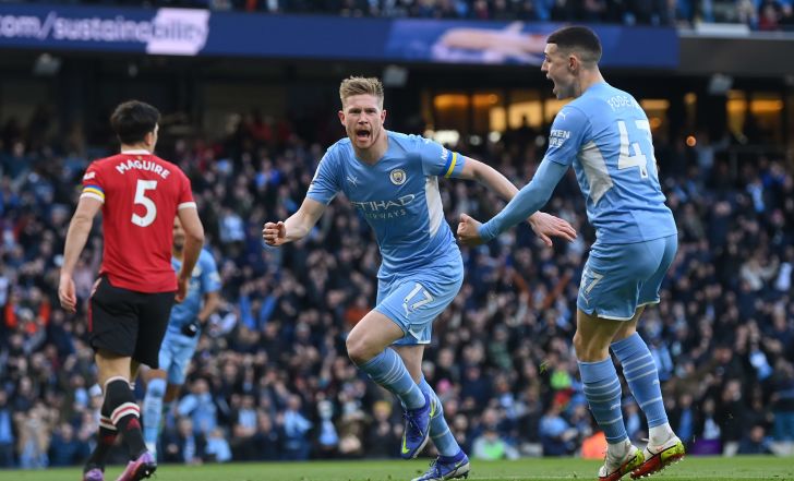 במשחק המרכזי של המחזור ה-28 בפרמיירליג, היתרון של הסיטיזנס על השדים האדומים היה ברור מהפתיחה. יונייטד אמנם הגיעה ללא כריסטיאנו רונאלדו ואדינסון קבאני הפצועים והמאמן הזמני רלף רנגניק חסר גם את שחקני ההגנה רפאל וראן ולוק שואו, אבל קשה להאמין שאחד מהם היה מצליח להאפיל על ההופעה האדירה של קווין דה בראונה, הכוכב הבלגי של מנצ'סטר סיטי שכבש פעמיים ב-28 הדקות הראשונות, בישל באומנות לריאד מחרז במחצית השנייה והיה אחראי לכך שבשלב מסוים סיטי החזיקה בכדור ב-92 אחוז מהזמן על פני רבע שעה, מספר בלתי נתפס.