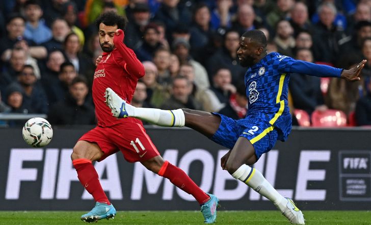 בלם צ'לסי אנטוניו רודיגר מול קשר ליברפול מוחמד סלאח | GettyImages, GLYN KIRK