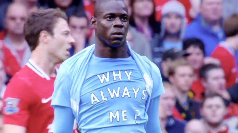 באלוטלי עוד בימיו בסיטי. שוב הסתבך, הפעם כנראה שלא באשמתו (צילום מסך)
