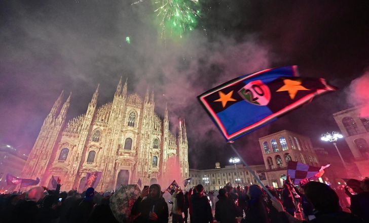 בפעם ה-20 בתולדותיה, ועוד בדרבי הלוהט של מילאנו, אינטר הבטיחה אתמול (שני) את תואר האליפות כשניצחה 1:2 את מילאן, הגדילה את הפער בפסגת הסרייה א' ל-17 נקודות וחגגה אל תוך הלילה עם השחקנים והאוהדים. הנראזורי חגגו אל תוך הלילה (והבוקר) בכיכר המרכזית של העיר כשהחגיגות היו בסימן הוספת כוכב נוסף לסמל, כשכל כוכב מסמל 10 אליפויות באיטליה. השמחה הגדולה ברחובות העיר היו בהתרסה כלפי הרוסונרי שעם 19 אליפויות, כשכל השחקנים העלו לרשתות החברתיות תמונות חגיגה עם שני הכוכבים.