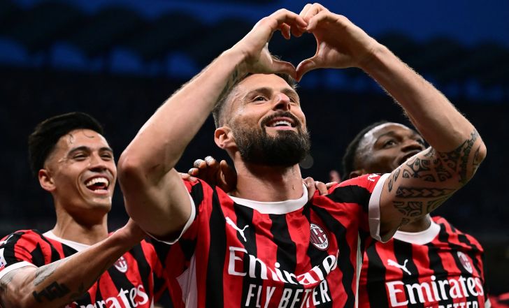 שחקני מילאן חוגגים עם אוליבייה ז'ירו