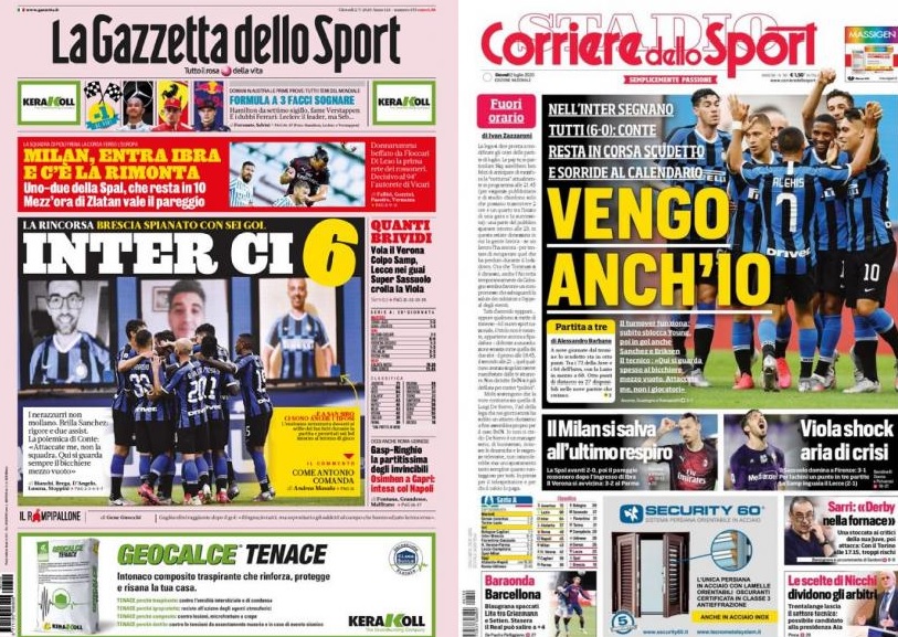 כנראה שזה לא יספיק לה לזכייה באליפות אבל אינטר של אנטוניו קונטה המשיכה את העונה הטובה שלה עם ניצחון ענק אתמול (רביעי) 0:6 על ברשיה בסן סירו. המקום השלישי שלה בלבד, והיא רחוקה ארבע נקודות מלאציו השנייה ושמונה מהמוליכה יובנטוס. זו הייתה הפעם הראשונה מאז נובמבר 2003 בה אינטר נהנית משישה כובשים שונים (אז זה קרה נגד רג'ינה) כשבין המבקיעים היו אז כריסטיאן ויירי, אובפמי מרטינס וחוליו קרוס.