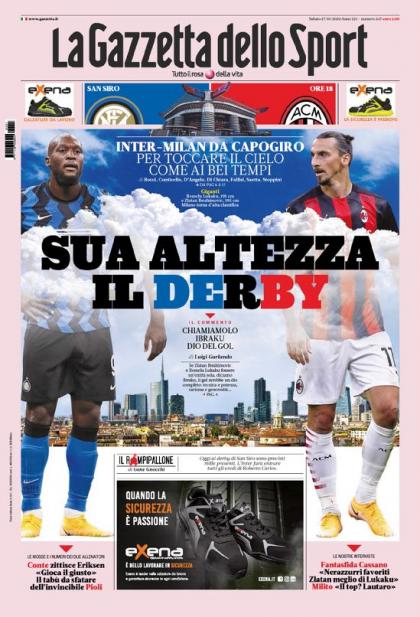 איטליה נרגשת לקראת הדרבי הראשון העונה בין אינטר ומילאן הערב (שבת) בשעה 19:00. "הוד רוממותו הדרבי מגיע כדי לגרום לכם להסתחרר", נכתב ב"גאזטה דלה ספורט". "לגעת בשמיים, כמו בימים הטובים", נכתב עוד בעיתון הגדול במדינה שם התמקדו בעיקר בצמד החלוצים רומלו לוקאקו וזלאטן איברהימוביץ' – "תקראו להם 'איברקו – אלוהי המטרות'". מי שעוד חימם את האווירה לקראת המשחק הוא חלוץ העבר אנטוניו קסאנו (38) האיטלקי ששיחק בשתי הקבוצות וגם ברומא ובריאל מדריד. הוא התייחס לחלוצים וניתח את יחסי הכוחות.