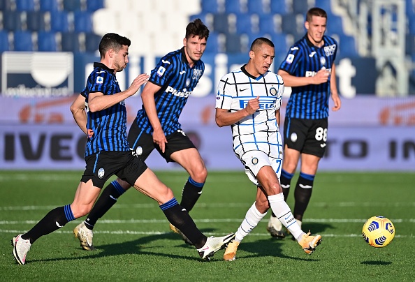 אלכסיס סאנצ'ס מול שחקני ההגנה של אטאלנטה. איבוד נקודות של אינטר | MIGUEL MEDINA/AFP via Getty Images