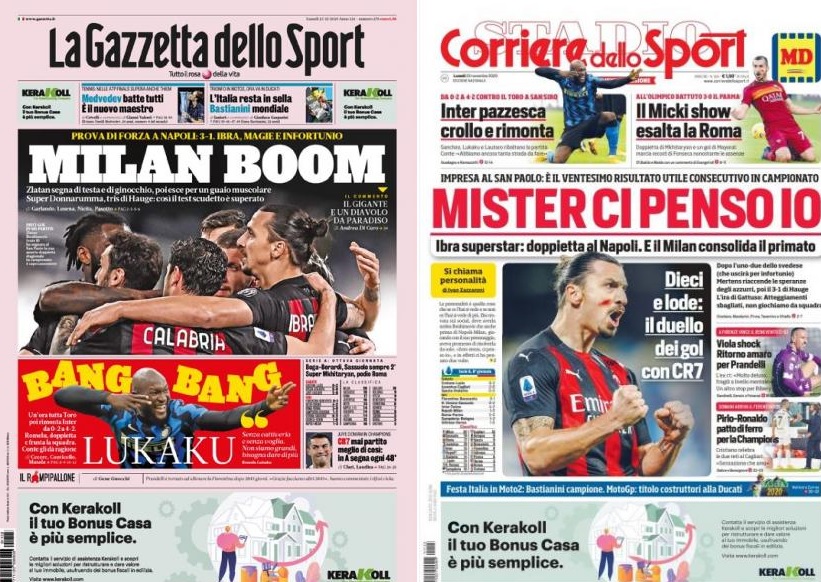 בכלי התקשורת הרעיפו שבחים על הרוסונרי כמובן. "איברה עבור הסקודטו", הייתה הכותרת ב"טוטוספורט". "הוא שוב הוביל את הדרך עם צמד נפלא". "בוס – אני אדאג לזה", נכתב ב"קוריירה דלה ספורט" עם דגש לזה שמדובר במשחק 21 ברציפות ללא הפסד בליגה. "איברה כוכב על, הוא שומר על הפסגה". "מילאן – בום, עוד מפגן כוח והפעם בנאפולי. איברה סיפק שוב רגעי קסם", הייתה הכותרת ב"גאזטה דלה ספורט".