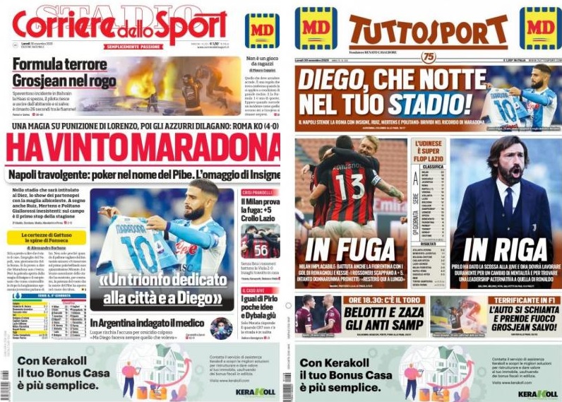 "ערב גדול של אינסינייה – שער, בישול והחולצה המרגשת", נכתב ב"גאזטה דלה ספורט". "מראדונה ניצח", נכתב ב"קוריירה דלה ספורט". "בעיטה חופשית קסומה של אינסינייה, הקבוצה משתוללת. באצטדיון שייקרא על שמו, נאפולי רקדה עם חולצה כמו של ארגנטינה". "דייגו, איזה לילה במגרש שלך. נאפולי מחצה את רומא", נכתב ב"טוטוספורט".