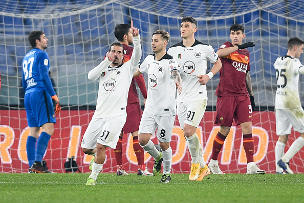 אז מה היה לנו בעצם? למשחק שנערך באולימפיקו ברומא, המארחת הגיעה עם סגל מלא. פאולו פונסקה עלה בהרכב עם בורחה מאיוראל, פדרו והנריק מחיטריאן, אך המדורגת 13 בסרייה א' עלתה למשחק בסערה, ובדקה השישית, אנדריי גלבינוב ניגש לנקודה הלבנה לאחר הכשלה של כריסטנטה, והעלה את ספציה ליתרון 0:1 מפתיע. שבע דקות לאחר מכן, בדקה ה-13, כובש השער הראשון הרים כדור נהדר לריקרדו סאפונארה, ששחרר בעיטה נהדרת מהאוויר לפינה הימנית. 0:2 מדהים לספציה!