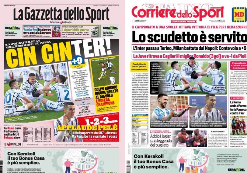 "הסקודטו כבר מוגש", נכתב בשער "קוריירה דלה ספורט". "אינטר ניצחה את טורינו ונהנתה כפליים אחרי מעידה של מילאן. זו נראית כמו נקודת מפנה וצעדה של לוקאקו ולאוטרו אל עבר התואר". "אינטר ממריאה עם ניצחון שמיני ברציפות", נכתב ב"טוטוספורט". "לאוטרו הוציא את הקסם ששווה את הבריחה בדרך לתואר. אינטר ממריאה ברכבת הרים", נכתב ב"גאזטה דלה ספורט" שם קיבל הארגנטינאי את הציון הגבוה 7.5. גם אלכסיס זכה לשבחים. "באינטר הוא שחקן מכריע", נכתב ב"גאזטה דלה ספורט" על הצ'יליאני שם הזכירו את השער בגנואה והצמד בפארמה. "אפילו לוח השנה לצידה" נטען בהסתכלות על המשחקים שנותרו.