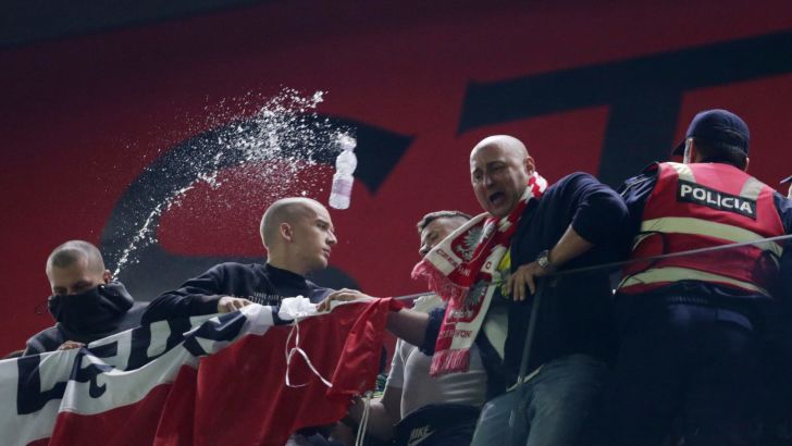 למרות זאת, הבלגן נמשך גם לאחר המשחק, כאשר איש הקווים של ערוץ TVP ספורט הספיק לשאול את שבידרסקי רק שאלה אחת, לפני מטח בקבוקים שנזרק פעם נוספת על השחקן. "מסוכן פה, אי אפשר להשלים את הריאיון", סיכם השדר ונמלט יחד עם שחקן הנבחרת. אחריו הגיע פיוטר ז'לינסקי שדווקא הצליח לדבר והסביר: "הבקבוקים האלה היו מלאים במים והם עפו עלינו בצרורות. היינו הרבה שם וזה היה מסוכן. מזל שאף אחד לא נפגע".