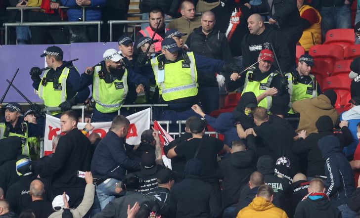 האוהדים ההונגרים תוקפים את כוחות האבטחה בלונדון