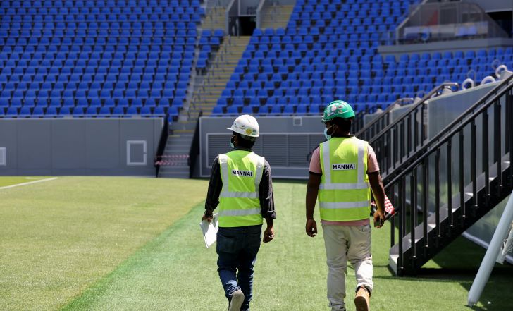 פועלים בונים אצטדיון בדוחא לקראת מונדיאל 2022 בקטאר