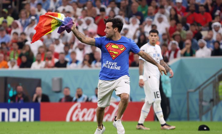 בתחילת המחצית השנייה לכר הדשא פרץ אוהד לבוש בחולצה שעליה לוגו של סופרמן והכיתוב "הצילו את אוקראינה", על גבה התנוססו המילים "כבוד לנשים איראניות" ובידו דגל הגאווה. על פי הודעה שפרסם לעוקביו ברשת האינסטגרם, הוא שוחרר הבוקר ממעצר ללא תנאים מגבילים. "אני חופשי", בישר לעוקביו. עוד לפני העדכון שלו, גם גילינו מי הוא אותו אדם אמיץ שפרץ והדהים את העולם בדרך בה הביע מחאה.